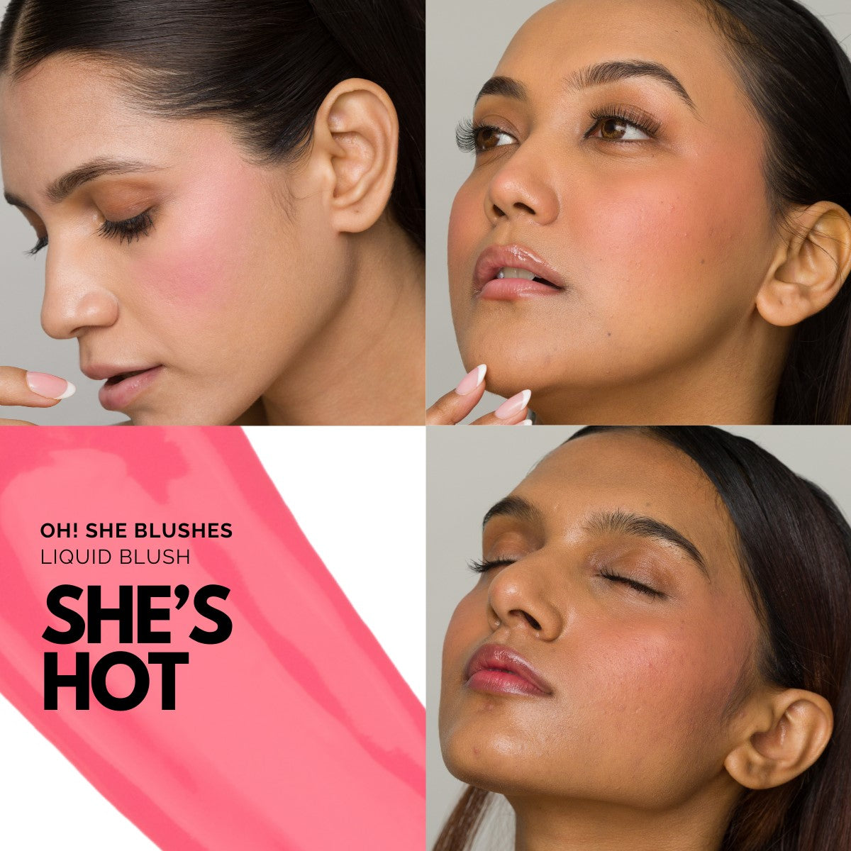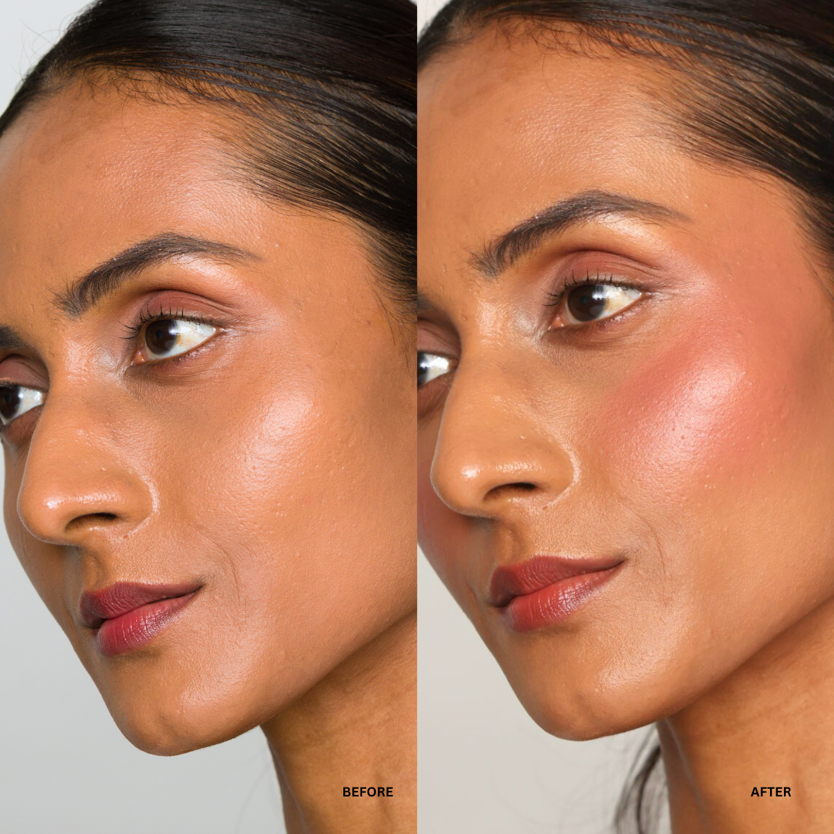Our liquid blush is long-wearing and designed to last all day without fading or patchiness, especially when set with powder