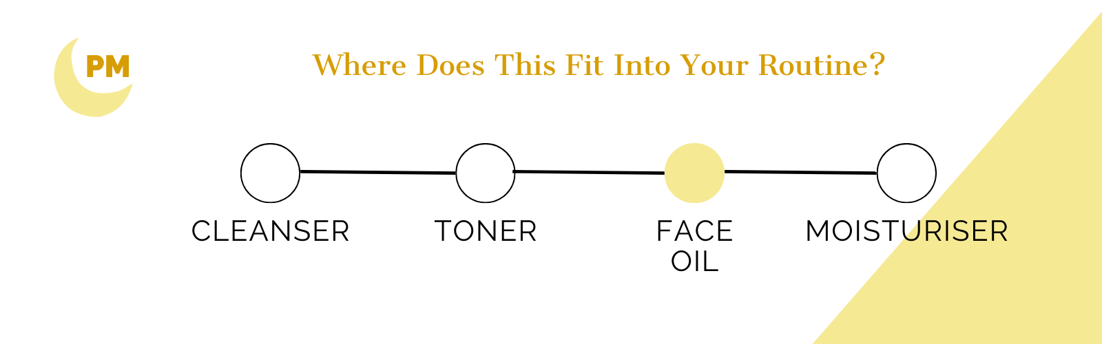 Cleanse, apply 2-3 drops, massage, leave overnight or 30 mins for oily skin, use